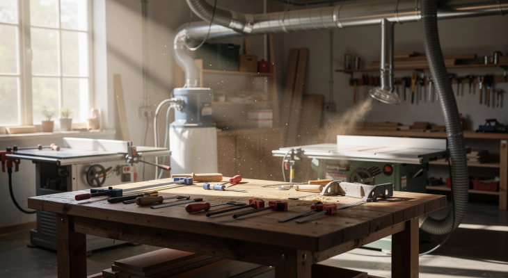 Au fil des heures passées entre les machines à bois et les projets en cours, la poussière de bois s’accumule vite. Pour limiter ce phénomène, il est recommandé de s’équiper d’un matériel pour aspiration d’atelier. Elle impacte non seulement la propreté générale, mais se glisse aussi dans les moindres recoins, même ceux difficiles d’accès. Ce phénomène rend la filtration de l’air indispensable pour limiter l’entretien fastidieux et réduire les risques sanitaires. Un atelier saturé de particules fines devient moins agréable et beaucoup plus risqué pour toutes les personnes qui y travaillent régulièrement.